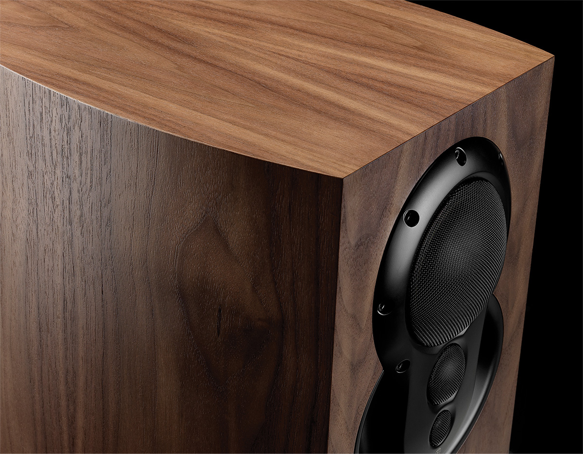 The complex laminated cabinet construction is pressure-formed to produce the distinctive curved design while providing an exceptionally rigid shell for the drive units to operate with minimised resonance. Carefully placed internal bracing provides added rigidity and an acoustically inert enclosure for stable mounting of the drive units.